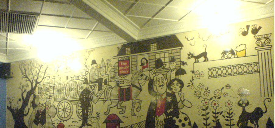 Near the popular shopping street Colaba Causeway, we found this place Cafe Mondegar, fascinating enough to spend the lovely evening. This vintage cafe with hilarious cartoons (murals) and catchy phrases on the walls by Mario Miranda will definitely gonna set you in a party mood. The ambiance was retro, yet electric with the best English songs of the ’80s and ’90s playing in the background.