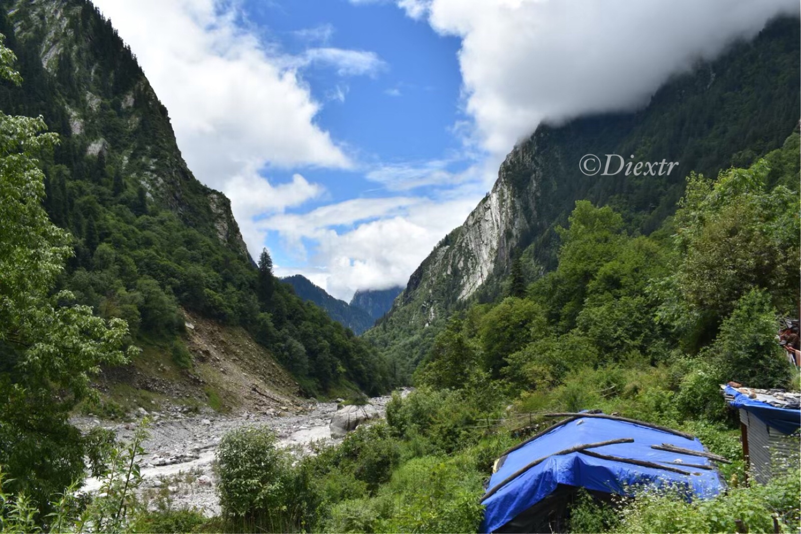 Then comes the river crossing, followed by a steep climb of 3 km up to Ghangaria. By now it was evening and the clouds were dangling over mountains as if they have returned back to home after all day wandering in the blue sky.